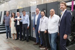Photo caption: From left to right: Peter Ens, Plural Advisor, Silvia Montes Head of sales office Brazil at HEIDELBERG, Dr. David Schmedding, Chief Technology & Sales Officer at HEIDELBERG, Carlos Jacomine, Plural CEO, Rogério Cordeiro, Plural CFO and Welinton Martins, Plural COO standing in front of the 100th CutStar generation 4 to be delivered.