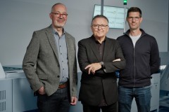 Photo caption: Increased efficiency and improved productivity – Druckstudio GmbH in Düsseldorf is among the pilot users of the new Compact Pallet Loader from HEIDELBERG. From left to right: Stefan Willems from the sales and customer support team at Heidelberger Druckmaschinen Vertrieb Deutschland GmbH, Werner Drechsler, founder and Managing Partner of Druckstudio GmbH, and Carsten Gronloh, Head of Premedia at Druckstudio.
