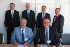 Photo caption: First row from the left: Gerd Finkenhofer (Mitsubishi HiTec Paper Europe GmbH), Steffen Roß (WiRo Energie & Konnex Consulting). Second row from the left: Klaus Gründler (WiRo Energie & Konnex Consulting), Hans-Jürgen Mittelstaedt (VCI NRW), Martin Drews (Business Association of the Rhineland-Westphalian paper-producing industry), Peter Lückerath (Energy Agency NRW)